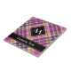 Pink, golden yellow and blue tartan design. Seamless pattern. Custom text and monogram.