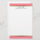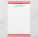 Pink and white stationery with gold trim. Personalize with your name, or business name and address. Text, font, font size, colour and placement are completely customizable, so make it your own.