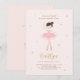 Personalised ballerina theme birthday invitation in pink and gold. Featuring ballerina in pretty pink tutu. Sweet, girly, chic and elegant. Comes with front and back design. Customise with name, age and party details. Ballerina image options available. Perfect for little ballerinas or ballet theme party.