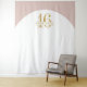 Elegant muted matte millennial pink and matte gold personalized birthday photo backdrop decoration for a sophisticated and modern sweet 16th birthday or quinceanera when you enter your custom name and age text. Colours and fonts can be changed, just click 'customize further.'