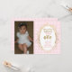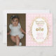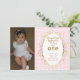 Pink & Gold first birthday invitations that say "Ribbons and bows, sparkle and fun (your name) is turning one!" These invitations have room for your daughter's photo on the left side. The background is pink and white polka dots. The word "one" and the fancy frame is printed in gold sparkles.