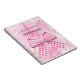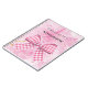 A girly notebook for school, journalling or diary. Pink fluids with golden splashes as background, decorated with a large checked bow. Personalize and add a name.