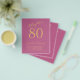 Get ready to celebrate the special 80th birthday of your loved one in style with this budget-friendly pink and gold script invitation. Feature an elegant script font, and a stunning pink and gold colour palette, this invitation will make your event one to remember. Impress your guests and make your loved one feel extra special with this budget-friendly 80th birthday invitation. LOW BUDGET INVITATION FLYERS. *** PLEASE NOTE this budget option is a flyer (no envelopes included) hence the low price - The SATIN option is the thicker choice. The design has an additional text template on the rear (yes, added value!) for extra details such as RSVP, directions etc.