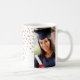 Customizable photo template class of 2024 graduation mug with gold and pink confetti pattern.