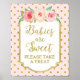 Babies are sweet please take a treat favors or candy bar sign poster for baby shower in light blush pink and gold dots pattern with gold border, rustic pink and peach watercolor flowers and handwritten style lettering.