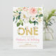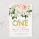 Pink Gold Floral First Birthday Invitation