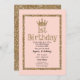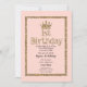 Pink Gold Glitter 1st Birthday Princess Crown Invitation