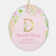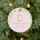 Pink & Gold Letter "D" Floral Monogram Birth Stats Ceramic Ornament