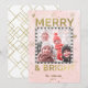 Pink Gold MERRY & BRIGHT Holiday Doodle Photo Card