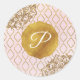 Pink & Gold Moroccan Glam Monogram Wedding Favour Classic Round Sticker