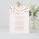 Direction card inserts for wedding in light pastel blush pink and white stripes pattern with gold colour confetti pattern and handwritten style lettering. Customize these cards with your wedding directions or other information to be included with your wedding invitations, also perfect for anniversary parties or birthday parties. Available in a wide range of matching wedding products.