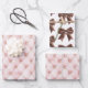 Pink Gold Tufts Brown Bow Bridal Shower Wrapping Paper Sheet