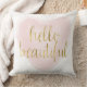 Pink Gold Watercolor Heart Hello Beautiful Throw Pillow