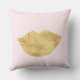 Pink lips on one side of pillow and gold lips on other side with a blush pink background