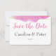 Simple, modern design of pink watercolour paint, and thin gold effect stripes to created accent.