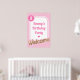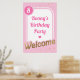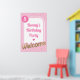 This welcome sign features a modern pink and gold design. The sign can be customised to suit any event. The script "welcome" heading is an image that cannot be edited. All of the other text is fully editable. For more advanced customization of this design, simply select the "Customize It" button above.
