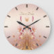 Pink Golden Leaves Floral Wall Clock