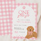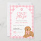Pink Goldendoodle Dog One Golden Year birthday Invitation