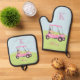 Pink Golf Cart Clubs Monogram Name Oven Mitt & Pot Holder Set