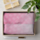 Tissue paper with your custom logo on a light to darker pink gradient background. Easy to use template. To adjust the spacing between the logo repetitions, increase or decrease the tile size and the size of the logo or upload your logo with a transparent margin.