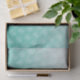 Tissue paper with your custom logo on a light to darker green gradient background. Easy to use template. To adjust the spacing between the logo repetitions, increase or decrease the tile size and the size of the logo or upload your logo with a transparent margin.