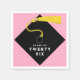 Creative graduation party napkins for class of 26 grads featuring funny line and classic black graduation cap with gold tassel on pink background.