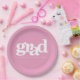 Be proud, rejoice and showcase this milestone of your favourite grad! Celebrate with this bold, stunning, simple, modern, custom paper plate. Bold, graphic, white typography overlays a soft pink background. Personalize with your grad’s name and class year. Your choice of 2 sizes: 7” or 9”. Matching announcements, address labels, cap toppers, fans, napkins and other graduation goodies are also available in this trendy and modern collection. Guaranteed to add stylish fun to their special party!