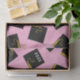 Creative graduation gift tissue and grad party decoration featuring classic black and gold graduation caps on pink background. Edit text to customize.