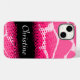Bright bold animal patterned case in black and pink hues. Personalize this item with your first name. This example currently reads: Christine. This original pattern by Sarah Trett, is based on the patterning found on a giraffe with a halftone moiré dot gain pattern overlay.