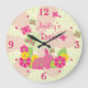 You can personalize the name on this hot pink, green, and yellow bunny rabbit, butterflies, and flowers personalized wall clock. Makes a cute clock for a girl's room.