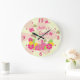 Pink Green Bunny Rabbit Butterflies Flowers Large Clock