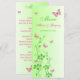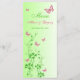 This hot pink and spring green floral menu card has pink and green SIMULATED glitter butterflies and flowers on it that matches the wedding invitation shown below. It is designed on a rack card with a glossy front, and matte finish on the back. If you would like a menu card on invitation paper to match your invitations, or if you have any requests for additional items or changes, please email niteowlstudio@gmail.com with your request.