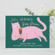 Pink green cat cute baby shower invitation