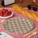 Pink Green Chequered Gingham Pattern Paper Plate