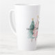 Pink Green Christmas Trees Gold Stars Latte Mug