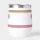 A super fun wine or coffee tumbler featuring crossed pickleball paddles and colourful pink and green stripes. Add you custom text to personalize. Easily change the colours. Makes a perfect pickleball gift for your friend, tournament partner, coach or anyone who loves this awesome game of pickleball.