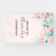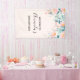 Baby shower banner with an elegant floral border. Flowers and leaves in pink and green.