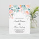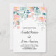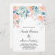 A wedding invitation with an elegant floral border. Flowers and leaves in pink and green.