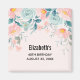 A birthday save the date magnet with an elegant floral border. Flowers and leaves in pink and green.