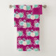 Pink & Green Floral Bouquet on Magenta Pattern Bath Towel Set