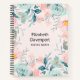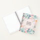 A personalized spiral notebook with an elegant floral border. Flowers and leaves in pink and green.
