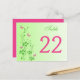 This spring green and hot pink floral table number post card has pink and green SIMULATED glitter butterflies and flowers on it that matches the wedding invitation shown below. You must change the number 22 to each number that you need, add it to your cart, and then come back and repeat the process with each number that you need. Quantity discounts may apply once you add all the items to your cart. If you have any questions, contact me at niteowlstudio@gmail.com.