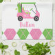 Pink & Green Golf Monogram Serviette de cuisine