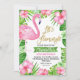 Colorés et lumineux vert et rose invitons à l'anniversaire. Ce design présente un feuillage vert aux couleurs vives, un flamant rose et une fleur d'hibiscus. Idéal pour une fête d'anniversaire flambant neuve.