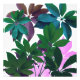 Beautiful wall art print with vivid, colorful leaves. Blue, green, pink leaf photography, original and trendy design.