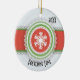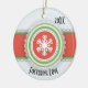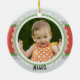 Pink & Green Merry Christmas Dated Photo Ceramic Ornament