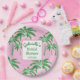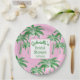 Pink Green Palm Tree Bridal Shower Custom Name Paper Plate