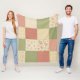 Pink Green Patchwork Quilt Rustic Farmhouse Floral Fleece Blanket