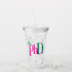 Pink & Green PhD Acrylic Tumbler with Straw | Pink & Green Doctoral Graduation Drinkware Gift