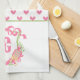 Pink & Green Pickleball Paddle Monogram Crest Kitchen Towel